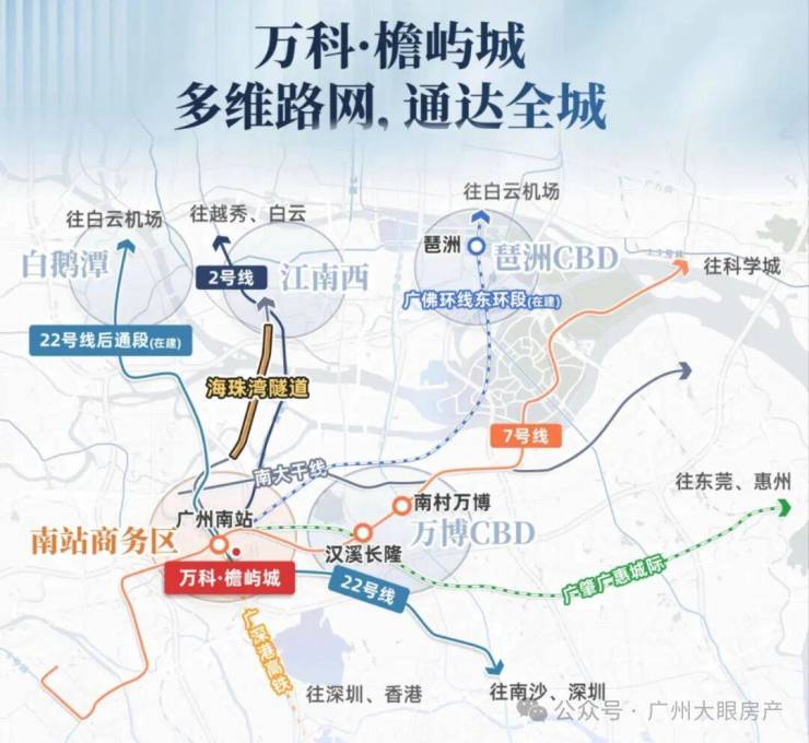 广佛环线能15min琶洲CBD,18min金融城CBD,30min白云机场(4站台:广州南站、石壁、谢村、番禺站)