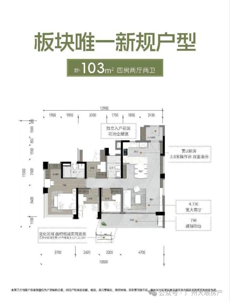 项目更是拿出了14种变异户型,部分阳台开间超过7米,匹配需求基础上,让人们真正找到“量身定制”的空间。