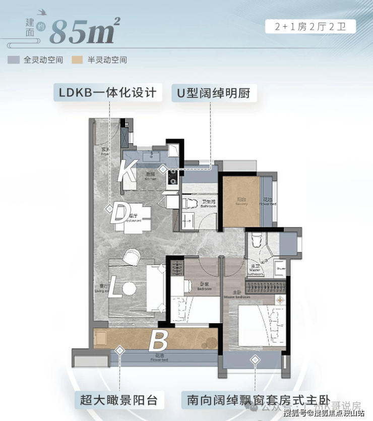 南向超大观景阳台,阔绰瞰景阳台,U型明厨,宽绰餐厨,盛载三餐四季