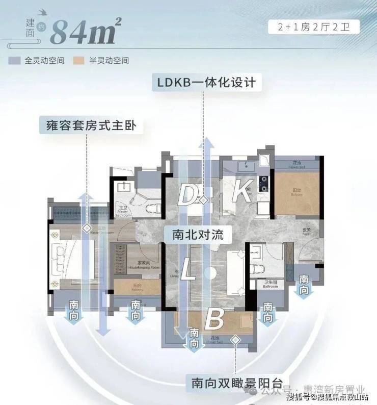 项目最新的户型图显示,仅是84平户型,就有12个赠送空间面。