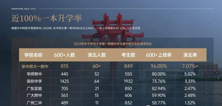 一本率600分以上949人(含少年班、竞赛保送清北人数),600分率90%,华南师范大学附属中学600分率只有80%,广东实验中学82.94%。