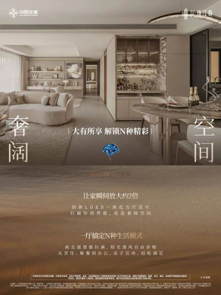 作为近8年广州珠江前航道南向望江稀缺之作中交四航·珠江春至低约51㎡LDKB方厅+270° 环幕主卧为高端改善人群兑现一步到位的理想生活
