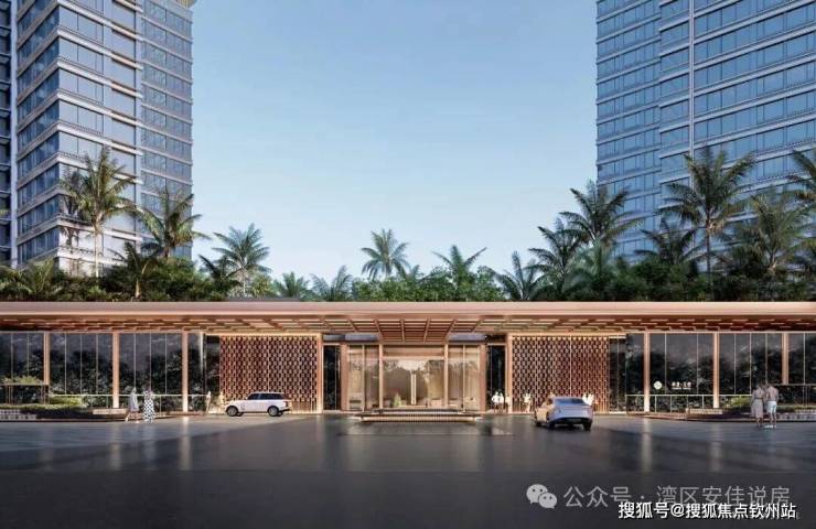①酒店式环岛门庭:无雨落客,仪式感归家门庭,约70米超长奢阔延展面,约7米高门阙,气度非凡仪式感满满