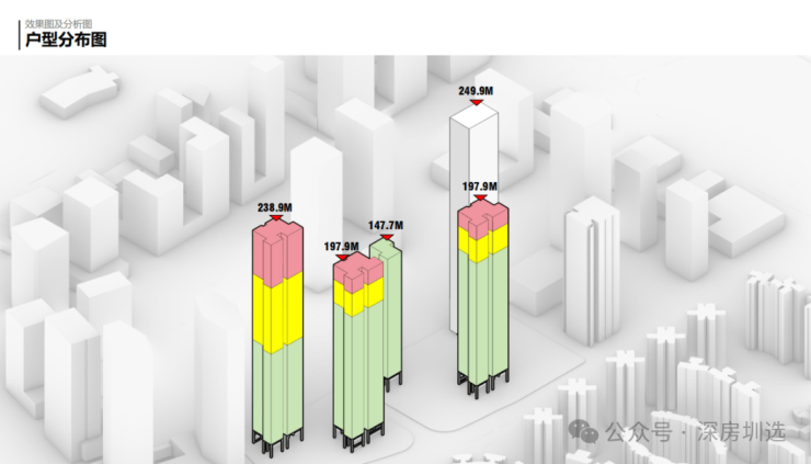 小区是1+4布局,1栋公寓250米(预计整售不单卖),4栋住宅分别是约150米、200米、200米、240米。