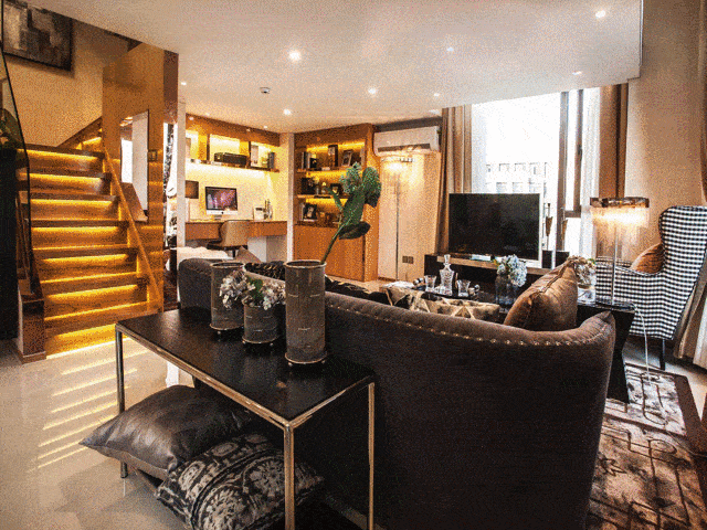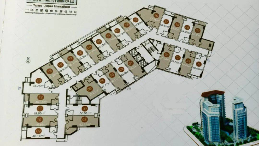 全部为挑高5.3米的MINI LOFT单元。两栋17层高层,规划为经理人公寓&星级智能写字楼,户型全部按挑高5.3米设计,主力户型面积46-69平米之间,可装修成复式小公馆/复式办公房。