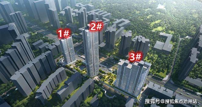 根据规划,项目由2栋高层一栋超高层组成,其中1号楼总26层、2号楼45层、3号楼32层,整体布局一字排开沿和平大道分布,具体楼栋分布如下图。