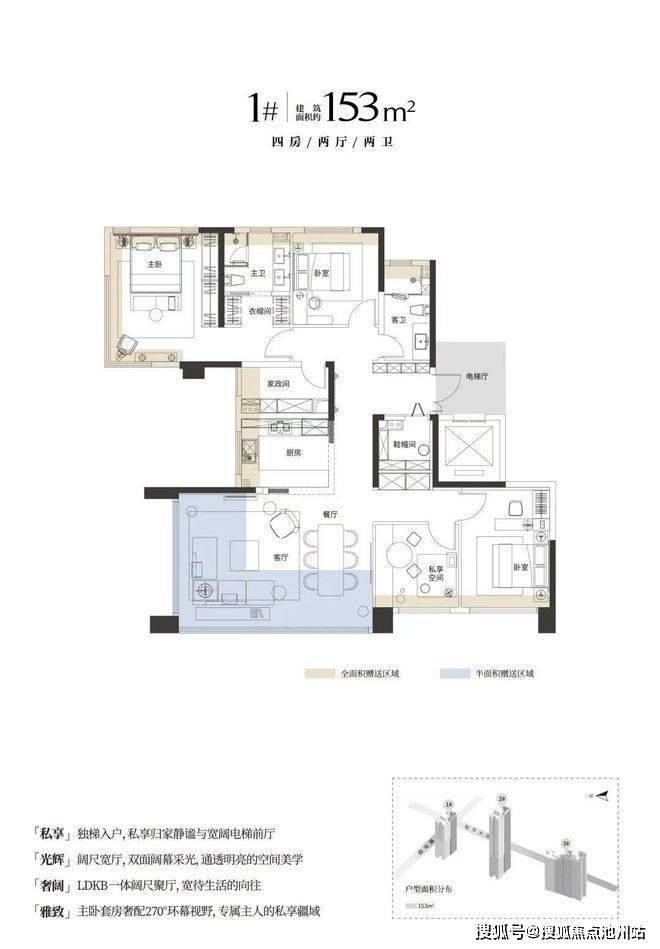华润望雲总建筑面积63753.26㎡,计容建筑面积46300㎡,住宅建筑面积37260㎡,容积率2.76,一共239户,机动停车位284个。