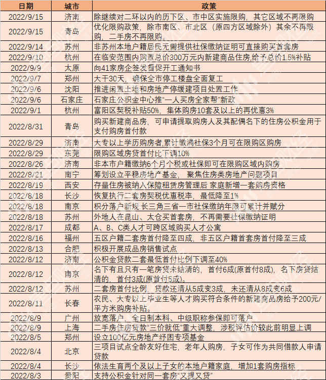 9月初,宁波、苏州先后直接全面放开限购:宁波家庭购房不再限制套数外地户籍;外地户籍可直接在苏州全市范围买首套房。