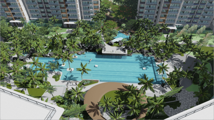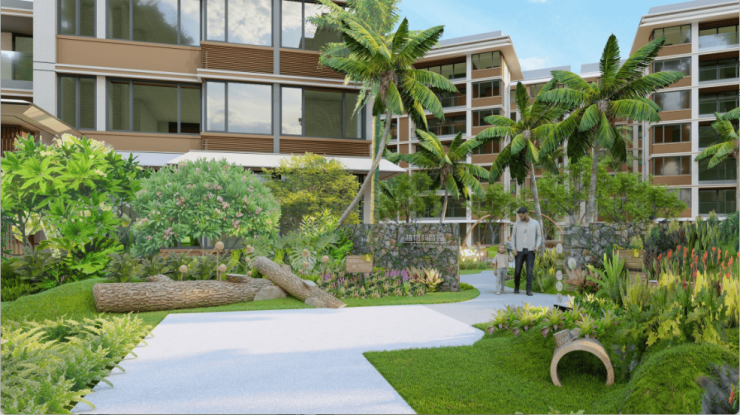 组团内曲折蜿蜒的景观轴线串联起各个组团庭院,整体简洁大气的氛围,舒适自然的花园空间,热带风情的植被设计,营造优雅舒适的海岛热带度假风情,打造高品质人居生活环境。