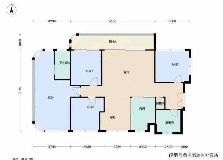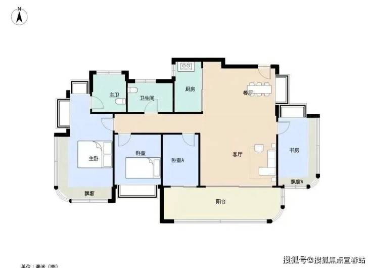 东南向横厅,无过道浪费,主卧弧形飘窗。