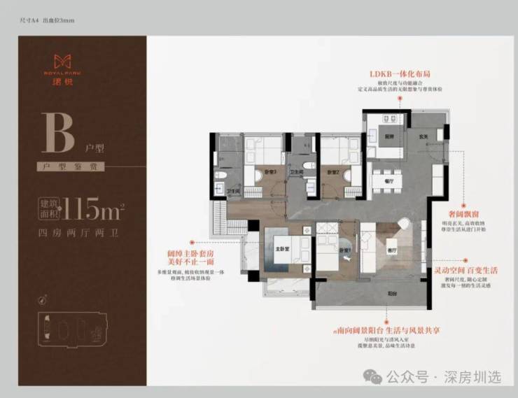 4️⃣ 2梯3户低梯户比,实用率达84%-98%