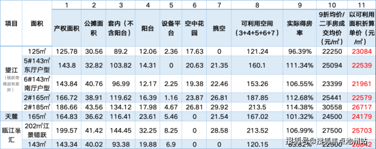 简单对比可以发现,望江因为得房率优势,与二手房相比,绝大多数面积段实得价格还是有性价比的。