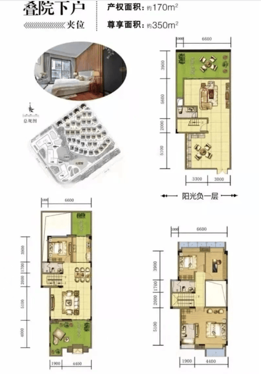 项目主推三类别墅产品:叠墅、双拼、独栋。叠墅分为上叠与下叠,上叠证载223㎡、实得325㎡,仅余一套;下叠证载170㎡、实得350㎡,余两套,均带独立院门与多层空间。双拼产品分大小两种,使用面积达850-1000㎡,满足三代同堂或社交型家庭需求。独栋产品地上地下共五层,空间开阔,私密性强,为终极改善之选。所有产品均强调“院子”概念,将岭南传统院落文化融入现代居住,实现“一片天地”的墅居理想。