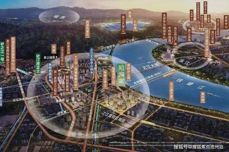 从中国美院到浙江音乐学院再到现在筹建的钱塘大学,之江竟在悄无声息间有了大学城的模样。浙一、同德、省人民医院等也都在之江有了分院,我在老城西住了二十几年,近两年蓦然发现,周边的邻居朋友都更喜欢往浙一之江院区去看病,穿过紫之隧道就到,时间比去老市区还快,而且还停车方便。之江大桥(以后四号浦隧道通了会更近)去滨江更方便,地铁6号线之江文化中心站是离知海棠最近的站点,目前得靠接驳车,后期12号线开通后,去未科也方便很多。