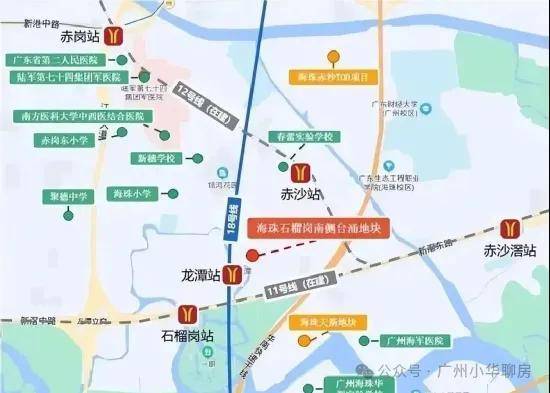 项目坐落于广州中心城区海珠区之心,华洲路旁,西侧为广州海珠湿地公园,南侧邻石榴岗河,距离地铁11号线(在建)和18号线换乘的石榴岗站约1200米,距离琶洲南TOD不到两公里。