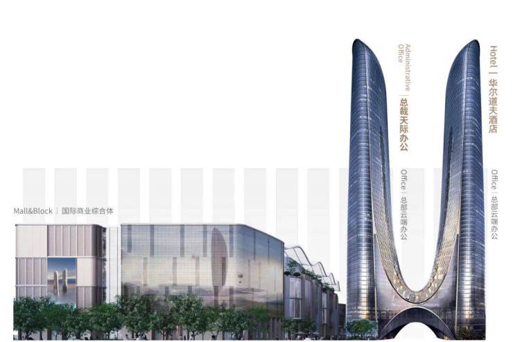 项目由2幢高约310米的塔楼和8万方商业组成,其中,2幢塔楼因建筑形态取自杭州拼音首字母“H”,社会广泛称之为“杭州之门”。