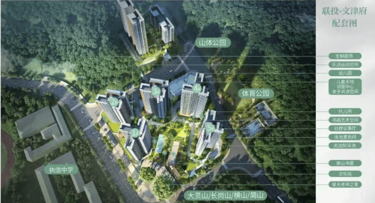 • 生态:三面环山,紧邻天河儿童公园、岐山公园,1公里内108个公园覆盖,绿化率42.7%。