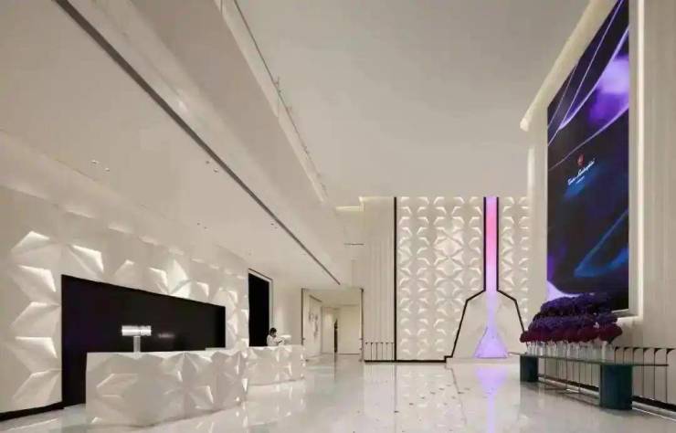 由国际设计天团SWS GROUP、CCD、SLD联袂打造,将超跑“纯粹、极致、不妥协”精神融入空间,如约420㎡户型的14米弧形巨幕公区,复刻跑车“闪电”型格23。