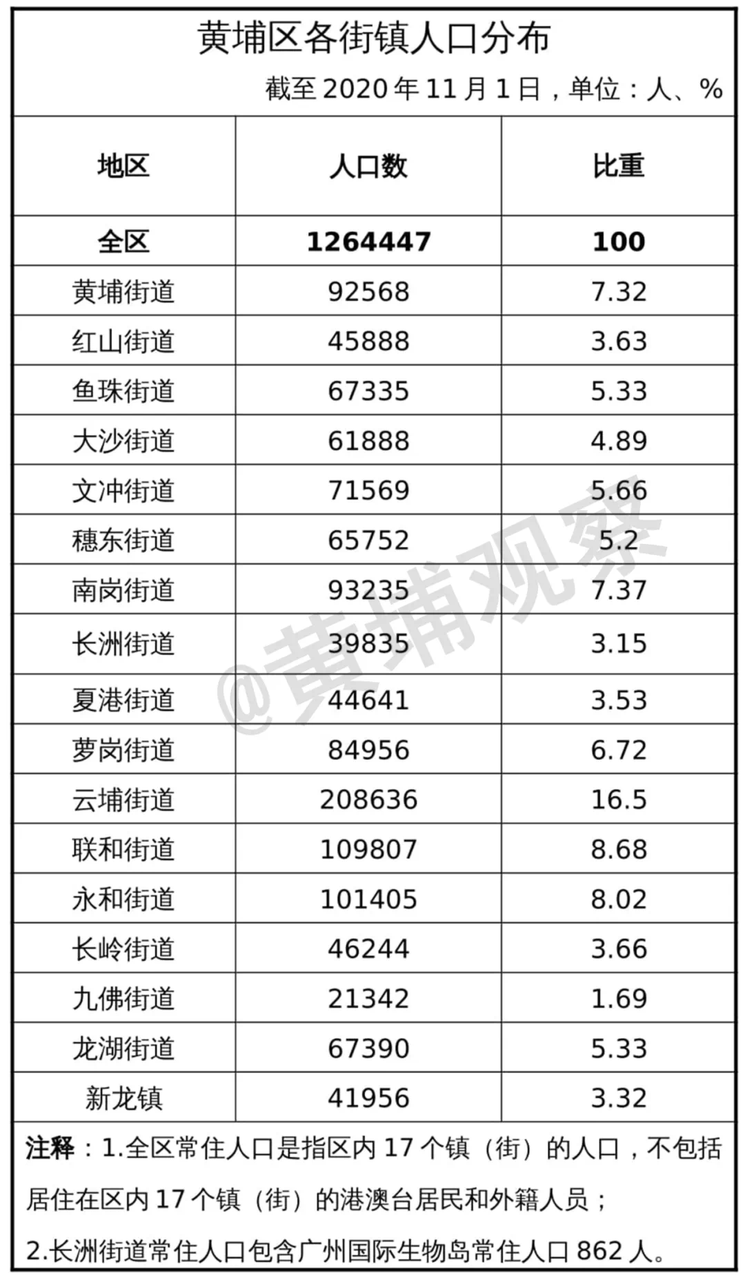 七普数据显示,截至2020年11月1日零时,黄埔区常住人口126.44万人。