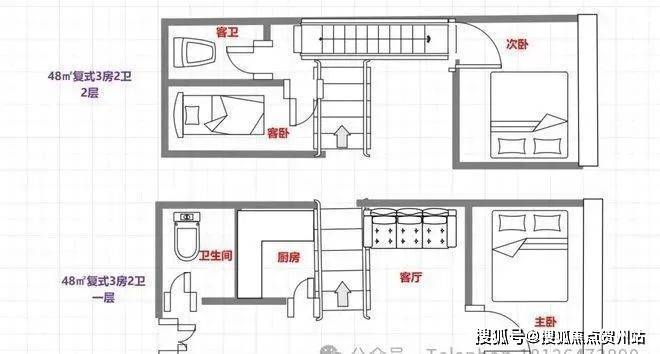 48㎡㎡3房2卫