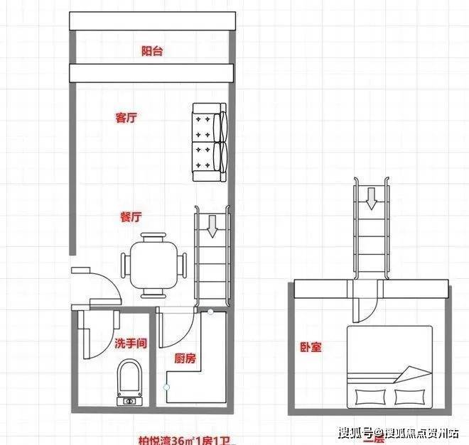 36㎡1房2庁1卫户型图