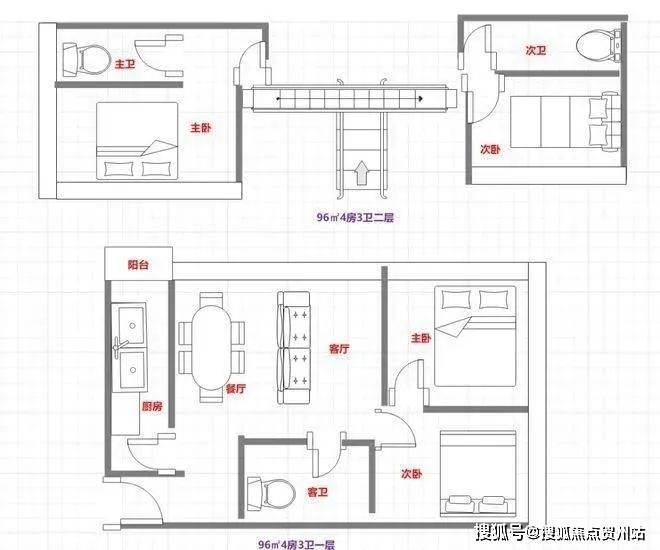 96㎡4房3卫