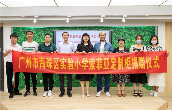 2021年9月17日,广州市海珠区实验小学在校举办了索菲亚定制柜爱心捐赠仪式,索菲亚向广州市海珠区实验小学捐赠了一批供师生教学活动使用的定制柜,包括三间教室办公室的吊柜和藏书室的6排立式书架、两面顶墙壁柜,让每层楼的教师办公室,都安装上了存放教学用具及资料的书柜。