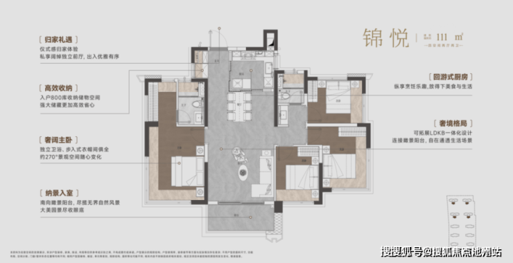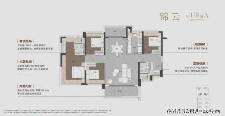 锦海棠的户型设计堪称“空间魔术师”。从111㎡到171㎡的四房户型,均采用了超新规设计,使用率超过100%。例如,171㎡双主套大平层户型,南北对流双阳台、LDKBG无界巨厅、总统级主套等设计,将改善需求拉满。样板间内,8米开间的巨厅可容纳多人圆桌,双主套设计让三代同堂互不打扰。而138㎡四房则采用专梯专户设计,每户自带约9㎡私家电梯厅,增加了私密性和尊贵感。