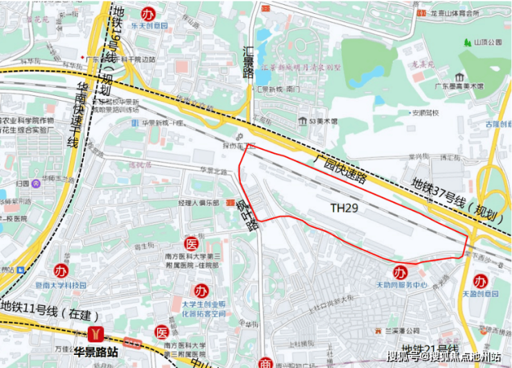项目位于天河五山汇景新城板块内,珠江新城和琶洲金融城两中轴间的核心位置,楼盘身后就是汇景20年醇熟的圈层配套