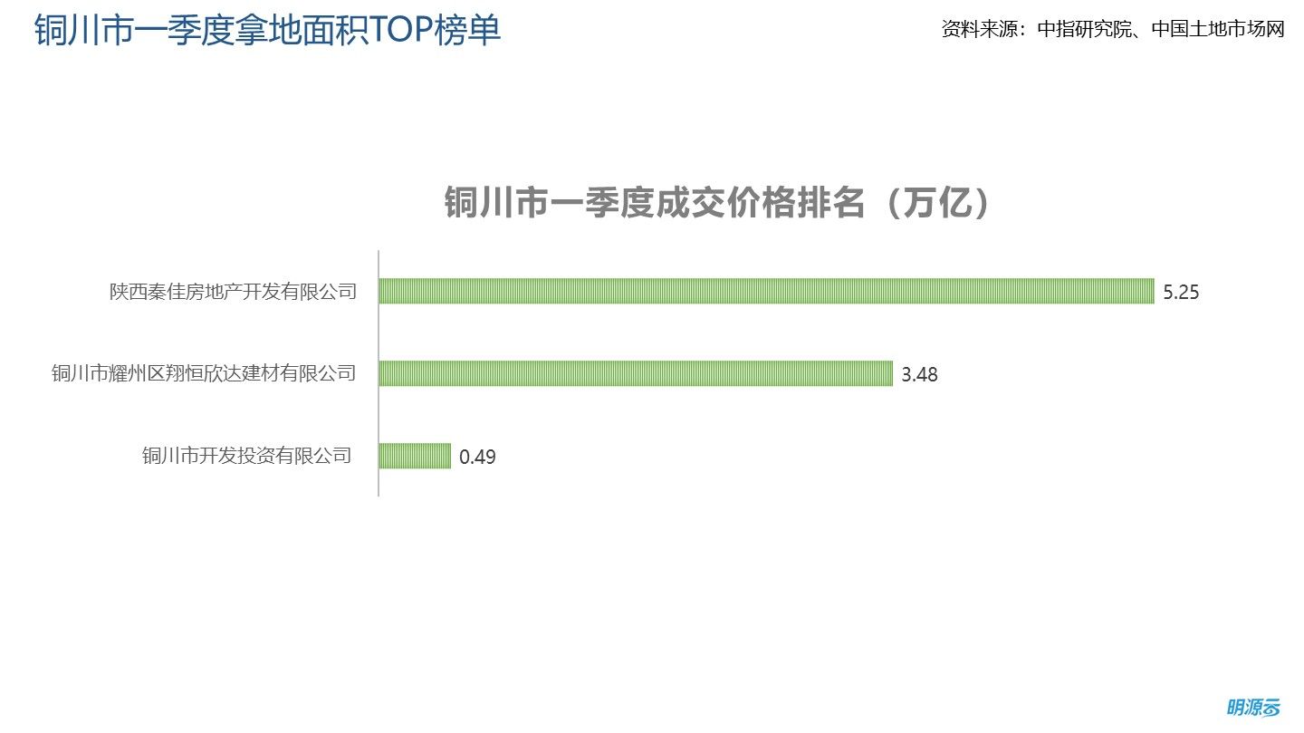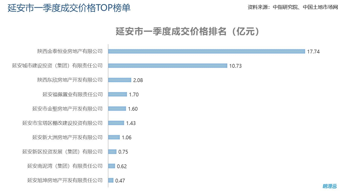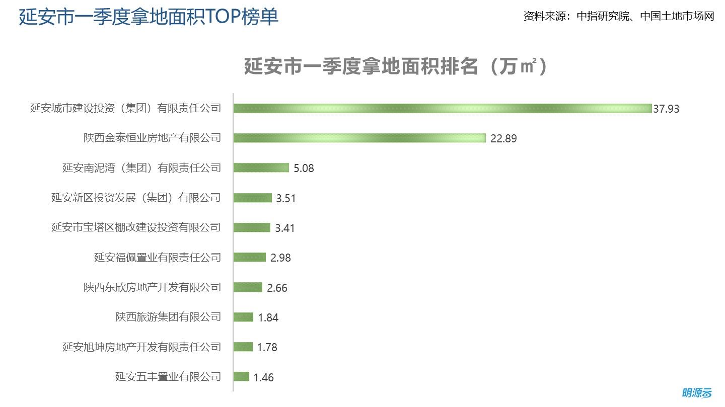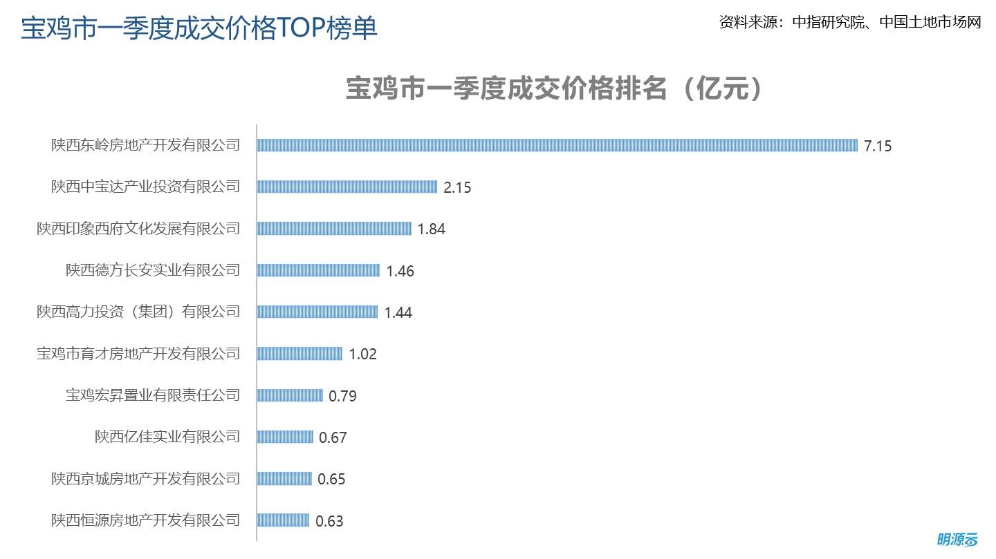 数据摘要 陕西省地市拿地较新数据表明: 据中国土地市场网信息得知,2021年一季度西安房企共拿地195.46万m²,拿地总金额共计147.79亿元。 据中国土地市场网信息得知,2021年一季度渭南房企共拿地119.73万m²,拿地总金额共计19.11亿元。 据中国土地市场网信息得知,2021年一季度