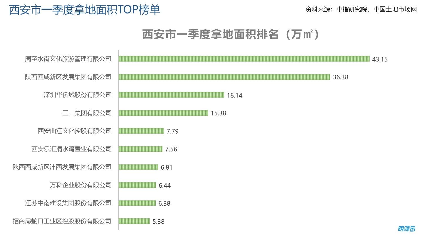 据中国土地市场网信息得知,2021年一季度西安房企共拿地195.46万m²,拿地总金额共计147.79亿元。