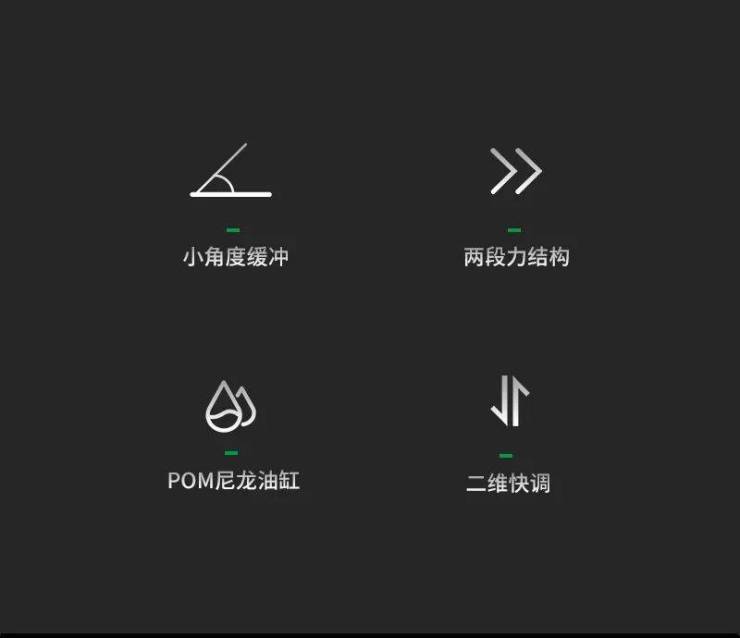 4、POM尼龙油缸,不氧化不漏油,比金属阻尼器耐用,受温差影响小,铰链闭合速度稳定;