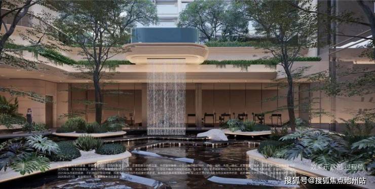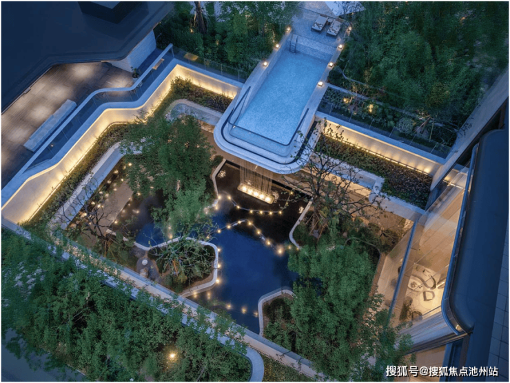 灵感源自新加坡edtion度假酒店的悬挑式戏水池,搭配4.3米飞瀑,创造别具一格的城市绿意的立体浮岛视觉奇观。