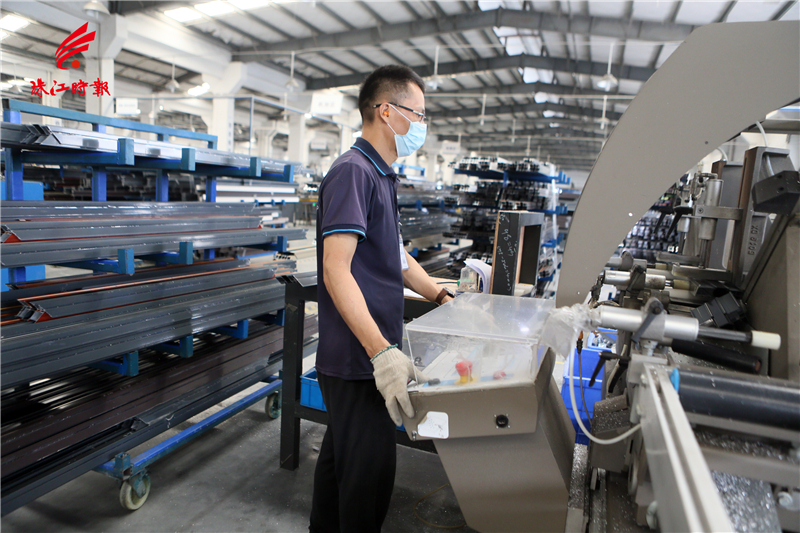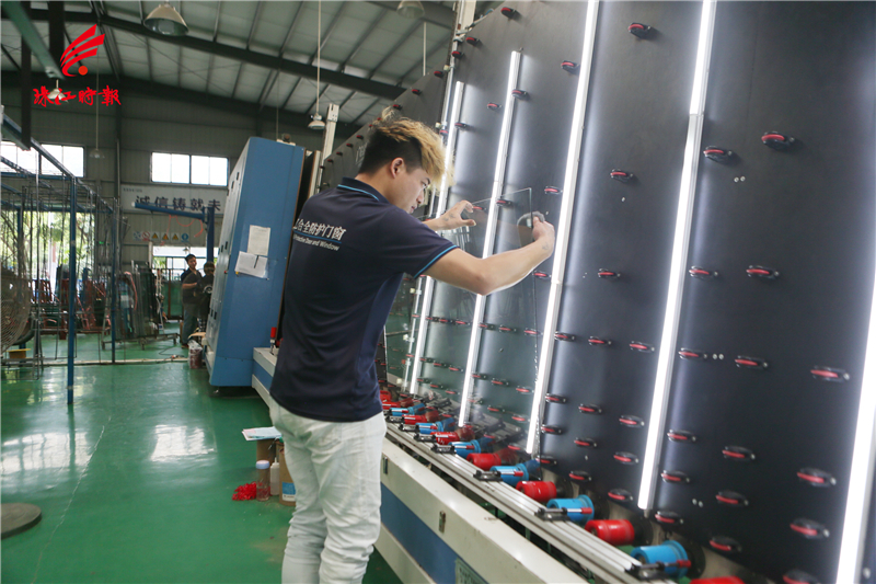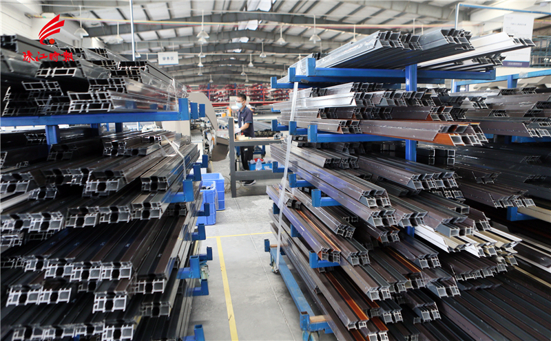 走进亿合门窗的生产车间,门窗产品的零配件整齐摆放在一角。