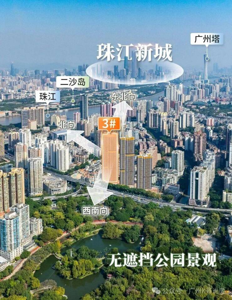 景观升级:东望中大、广州塔;北望二沙岛珠城,西南向直望晓港公园