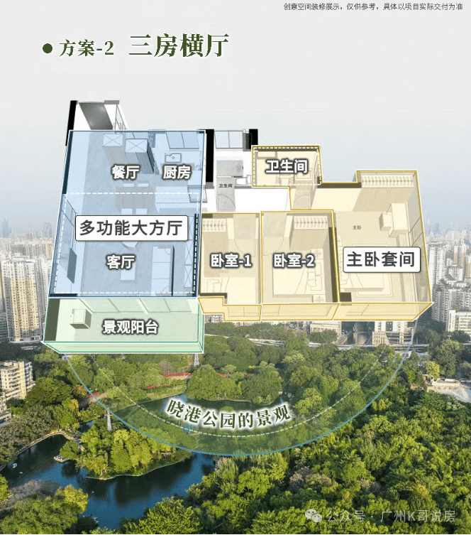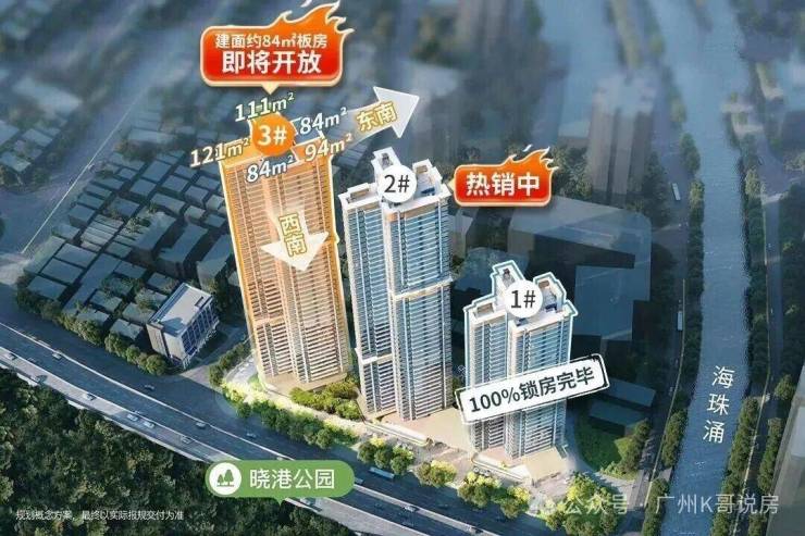 西南向是城市绿肺晓港公园,东面高层户型还能眺望珠江和广州塔。