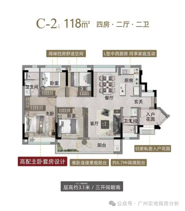 118㎡南北对流四房,四开间南北对流,约6.7米大阳台,山园双景双面景观,98%户型使用率,3.1米豪宅层高。 137㎡东南向四房,四开间南北对流(东南) 约7.2米大阳台,约5.8米超阔绰客厅开间(板块唯一),东南向梅花岭一线山景,3.1米豪宅层高。使用率96%。