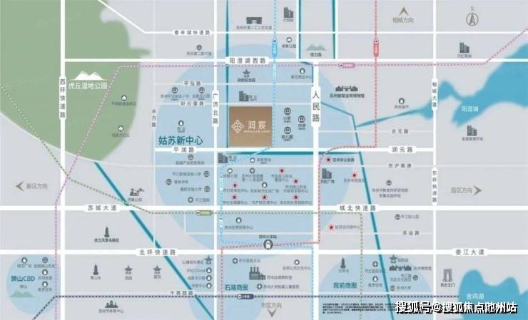 • 城市大动脉:广济北路、人民路两条城市干道,快速连通姑苏区山塘街、观前街等城市繁华区。春申湖快速路,快速通达园区及新区