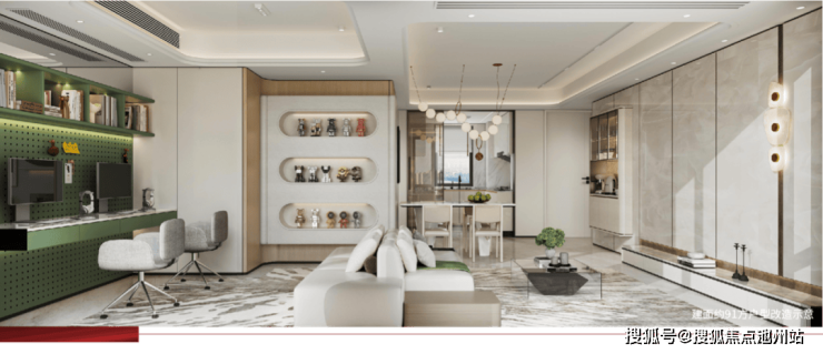 作为“主力王牌”产品,建面约108㎡户型采用去过道化设计,空间灵活可变,可打造开放式厨房拓展家庭场域,适合年轻夫妇;也可将北向书房与次卧融合,变身双孩套房,灵活适应家庭成长需求。