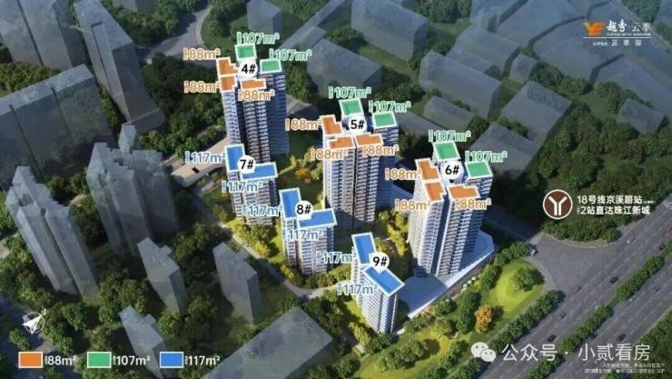 2、“0飘窗”黑科技:虽然阳台率从25%降到20%,但通过“0飘窗+薄墙体”设计,实际使用率120%,相当于107㎡户型能当128㎡用,直接叫板天河125㎡产品。