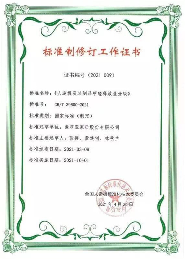 对于环保,索菲亚十年如一日的坚持低碳环保、可持续发展的绿色理念,从引入国外优质木材到严选国家战略支持的林场专供木材,从源头就把控基材品质。而且在产品加工过程中,使用的医用型MDI无甲醛生态胶黏剂,经过高温净化甲醛工艺,利用高温逼出板材内残留的甲醛等物质。每一块板材经过层层选拔,再利用精密生产设备、中央集成自动除尘系统和5S标准化管理,严格遵照欧洲、北美、日本、国内等主要市场标准,精准把控每一道工序,所生产板材主要参数指标性能优异,远超市场标准限定值,真正能够做到,用更优质环保的健康好板材,让每一个消费者都能更放心。