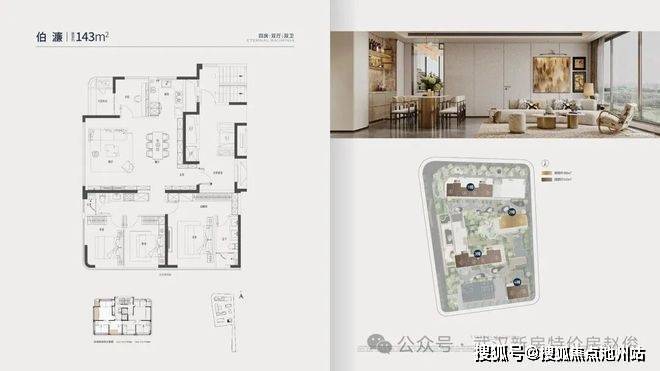 户型:143㎡四房(钟书/绛采系)、180㎡四房(启明系),得房率约95%-97%,部分户型带270°观景阳台。