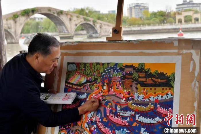 秀洲的农民画家里,不仅有被美国《时代》周刊评为“亚洲十大艺术家”之一的缪惠新,也有浙江省农民画非物质文化遗产传承人张金泉。他们笔下的农民画作品,取材于民间、以传统乡土文化和乡土生活为元素,记录着家乡的日新月异。目前仅在秀洲的油车港镇,当地活跃的农民画非遗传承人、主创人员等就有近百位。