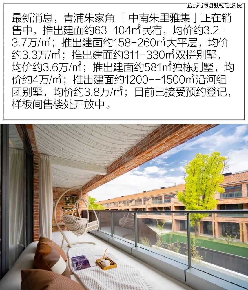 较新消息,青浦朱家角 「中南朱里雅集」正在销售中,推出建面约63-104㎡民宿,均价约3.2-3.7万/㎡;推出建面约158-260㎡大平层,均价约3.3万/㎡;推出建面约311-330㎡双拼别墅,均价约3.6万/㎡;推出建面约581㎡独栋别墅,均价约4万/㎡;推出建面约1200--1500㎡沿河组团别墅,均价约3.8万/㎡;目前已接受预约登记,样板间售楼处开放中。