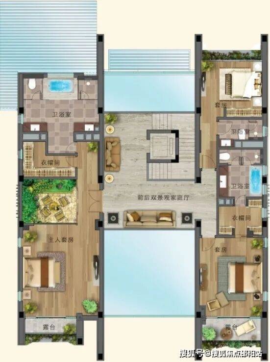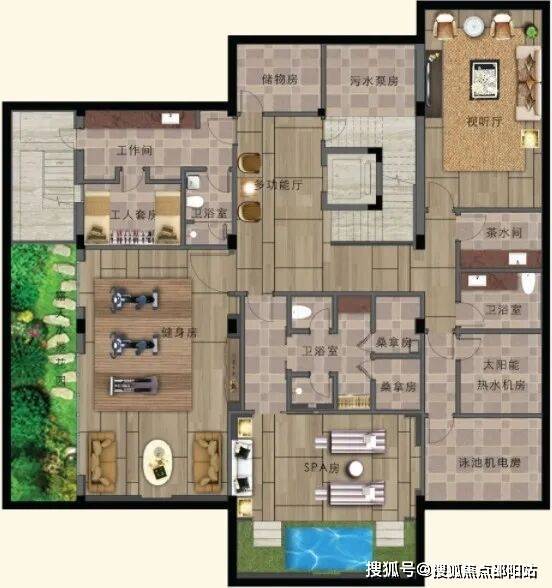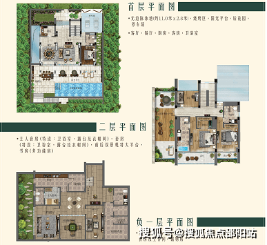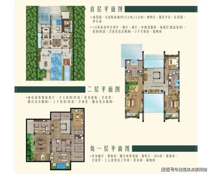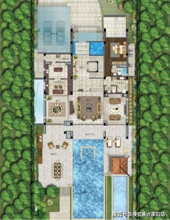 私家泳池花园层层叠加设计,配58㎡独立泳池,活动平台;