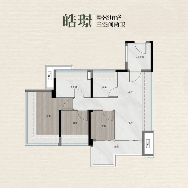 建面约89平方米的“皓璟”户型采用全南向塔楼布局,配置独立入户花园与双卫生间。L型双面宽阳台朝向东南,视野无遮挡,LDKB(客厅、餐厅、厨房、阳台)一体化设计使公共区域达到约28平方米,适合二人世界向三口之家过渡。而建面约99平方米的“和璟”户型则实现四开间南北对流,13.8米采光面配合双面宽无柱阳台,主卧带独立卫浴,次卧与书房可灵活切换功能。所有主力产品均按新规设计,得房率较旧规提升约5%–8%,部分楼栋小高层实现专梯专户,减少公共动线干扰。