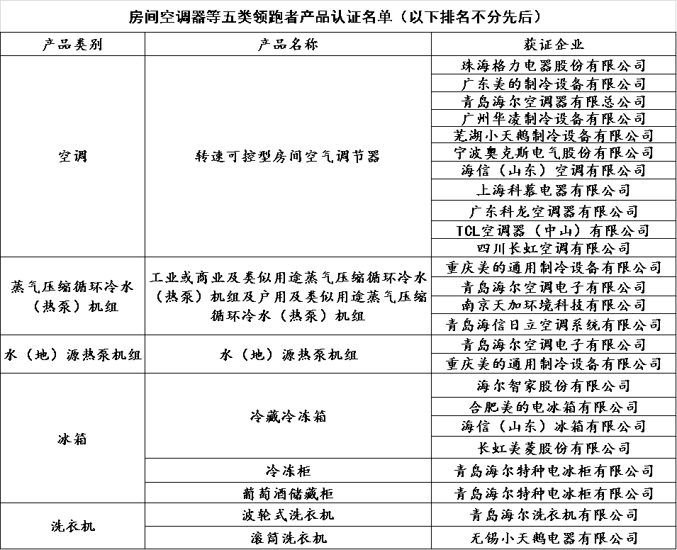 自愿性认证是向社会大众传递理念,帮助消费者甄别产品的重要手段。本次会议发布了首批绿色低碳家电认证和房间空气调节器、家用电冰箱、洗衣机、水(地)源热泵机组、蒸气压缩循环冷水(热泵)机组等五类产品的领跑者产品认证。据悉,这批自愿性认证由中国家用电器研究院旗下的中家院(北京)检测认证有限公司推出,旨在推动社会对绿色低碳和具有行业先进水平的家电产品的认知。其中,绿色低碳家电认证以《家用电器生命周期评价导则》为技术支撑,综合评价了家电产品在生产制造环节的碳排放水平,有利于家电企业开展节能减排工作。经过检测和评价,海尔、美的、海信等行业知名企业产品获得了本项认证。