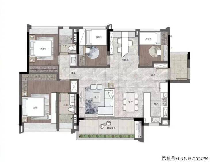 🔘同样是罕见的四开间格局,拥有明朗景观