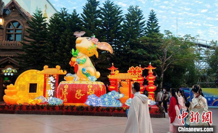 中新网厦门1月8日电 (记者 杨伏山)2023年厦门方特新春灯会7日晚启动亮灯仪式,18组花灯梦幻亮相:有代表兔年大吉的“兔飞萌进”,有寓意福满乾坤的“花团锦簇”,有象征“飞天之梦”的“魔幻天宫”,有承载奇妙梦想的“小龙女”……