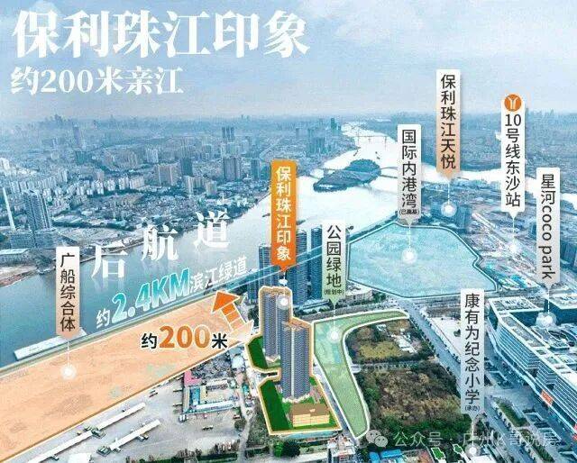 项目与珠江的直线距离,只有约200米,数值与市面很多豪宅不相上下